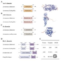 图2.达卡气单胞菌aerA、ahh1、rtxA、th的生物信息学分析